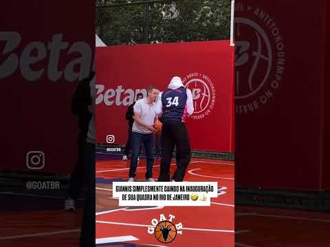 E esse escorregão do Giannis craque da NBA na inauguração da quadra no RJ #basquete #esporte