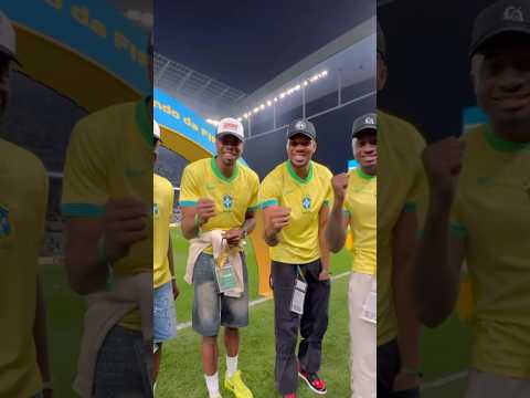 Giannis Antetokounmpo is on stage at the game between Brazil and Paraguay to watch the match