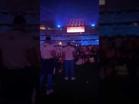 Oι παίκτες της Εθνικής πόλο τραγουδούν τον Εθνικό Ύμνο στην Τελετή Λήξης των Ολυμπιακών Αγώνων