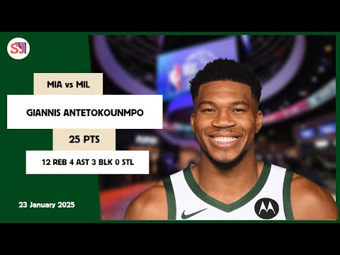 GIANNIS ANTETOKOUNMPO 25 PTS vs MIA 23 Jan 24-25 MIL Highlights
