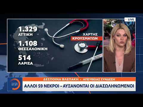 Κορονοϊός: 6.700 κρούσματα σήμερα, 59 θάνατοι, 434 διασωληνωμένοι