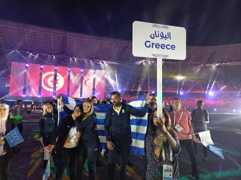 Τελετή έναρξης Μεσογειακών Αγώνων 2022 Οράν Αλγερία - Σημαιοφόροι Μάκης Μίτας - Άννα Κορακάκη