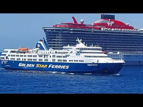 ΜΥΚΟΝΟΣ αναχωρηση και ταυτοχρονη αφιξη SUPERFERRY K WORLDCHAMPION JET