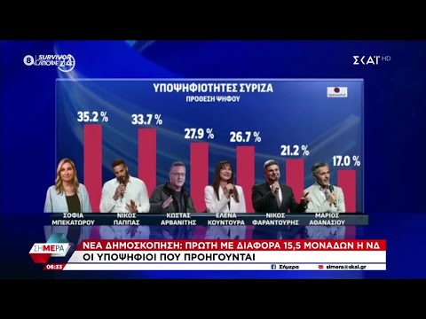 Νέα δημοσκόπηση: Στις 16,4 μονάδες η διαφορά ΝΔ - ΣΥΡΙΖΑ | Σήμερα | 07/06/2024