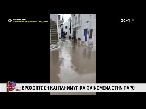 Εικόνα φθινοπώρου σήμερα στη Μύκονο - Βροχόπτωση και πλημμυρικά φαινόμενα στην Πάρο