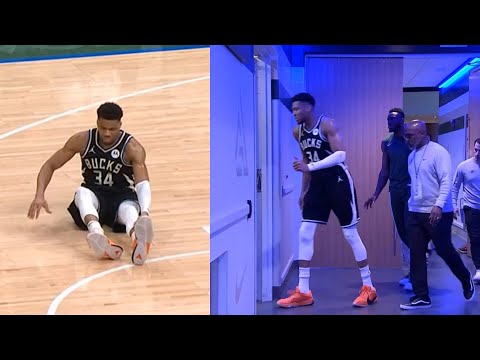 Giannis drops to floor and limps to locker after non contact leg injury vs Celtics