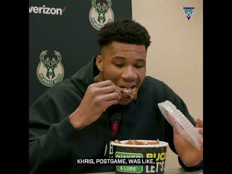 Giannis REALLY brought a bucket of wings to the postgame presser