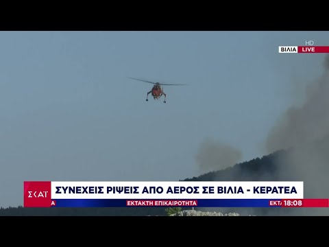 Συνεχείς ρίψεις από αέρος σε Βίλια και Κερατέα | Έκτακτη Επικαιρότητα | 16/08/2021