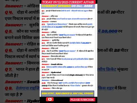 09/12/2025 current affair | today current affair | #dailycurrentaffairsinhindi #currentaffairs #news