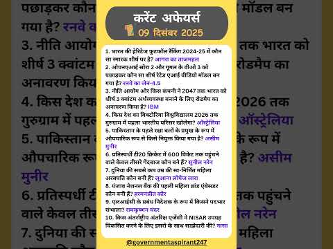 9 DEC 2025 || CURRENT AFFAIRS|| #news #shortsfeed #short #dailyshorts #upsc #ssc #rrb #newsstories