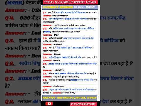 10/12/2025 current affair | today current affair | #dailycurrentaffairsinhindi #currentaffairs #news